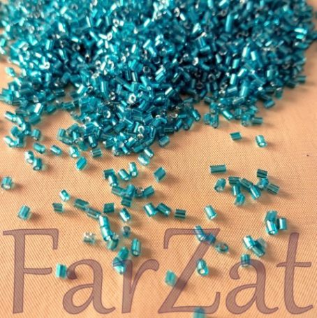 Margele nisip tubulare cu dimensiunea de 3 mm, culoare bleu cu reflexii aurora boreala. Acest tip de margele se vand