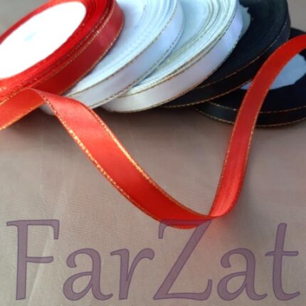 Panglica satinata brodata cu fir auriu. Panglica pentru diverse articole vestimentare, decoratiuni etc. Cullori: alb, negru, rosu Latime: 1 cm