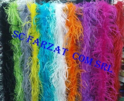 Fular din pene de strut (marabu) de culoare albastra, cu lungimea de 2 metri. Penele sunt naturale (vopsite si tratate). Avem urmatoarele