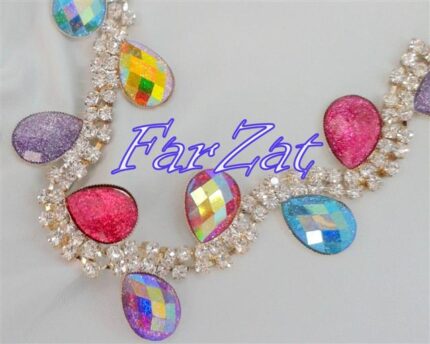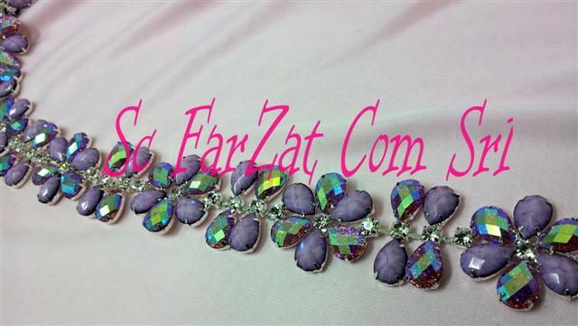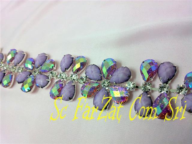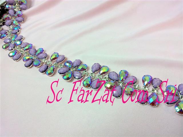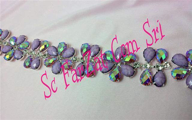 Accesoriu in forma de floare confectionata din pietre de cusut din acrylic de forma lacrima. Pietrele ce alcatuiesc aplicatia sunt de culoare mov si mov cu reflexe de aurora boreala. Acest accesoriu se poate coase pe orice tip de material si este ideal pentru personalizarea tinutelor vestimentare. Pretul afisat este pentru un metru de aplicatie imbracaminte.