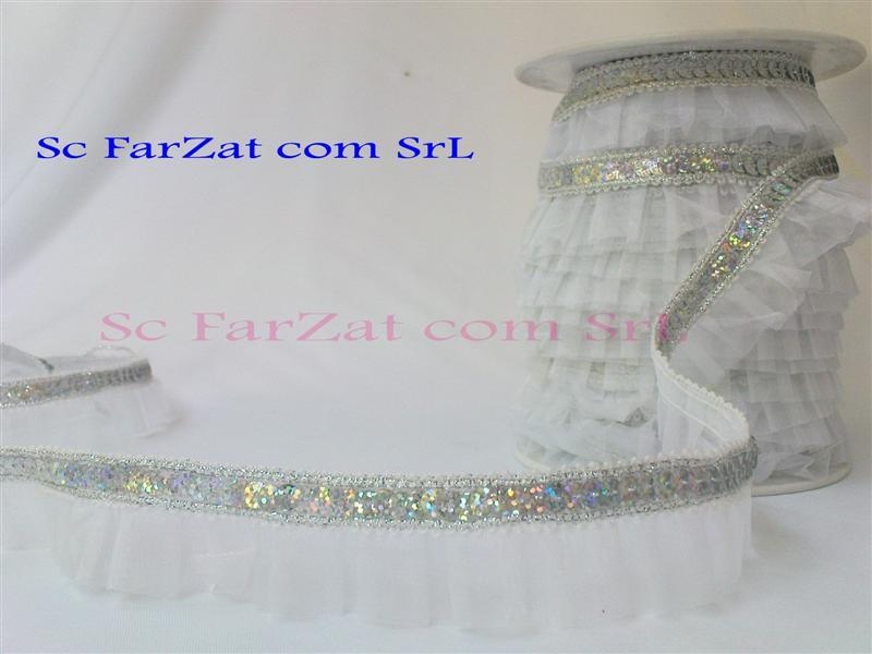 Aplicatie confectionata din tesatura organza alba cu paiete argintii avand latimea de 3cm.