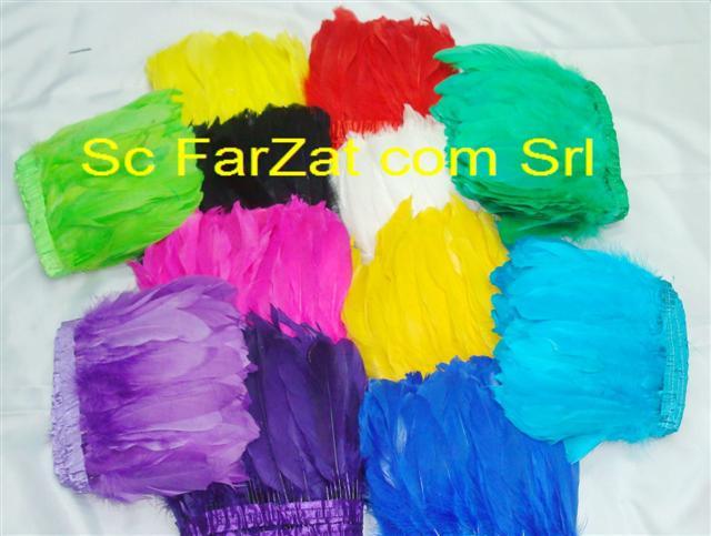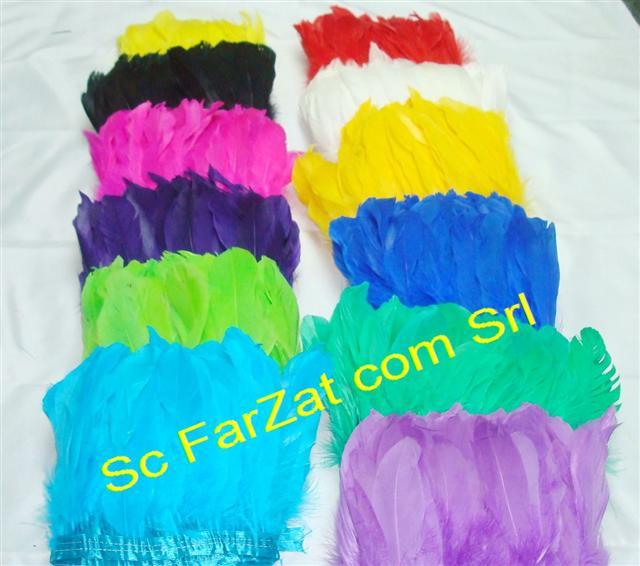 Banda design din pene de porumbel de culoare ciclam cu lungimea de cca 15cm, cusute pe o panglica din satin cu latimea de cca 1cm avand tot culoarea ciclam.