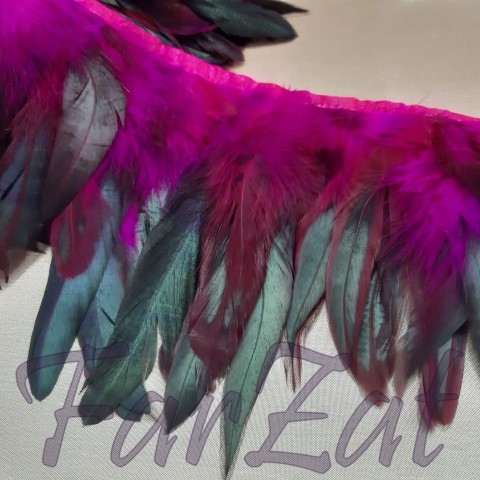 Banda ornamentala realizata din pene de cocos si fazan (vopsite si tratate), pentru articole vestimentare, decoratiuni etc.