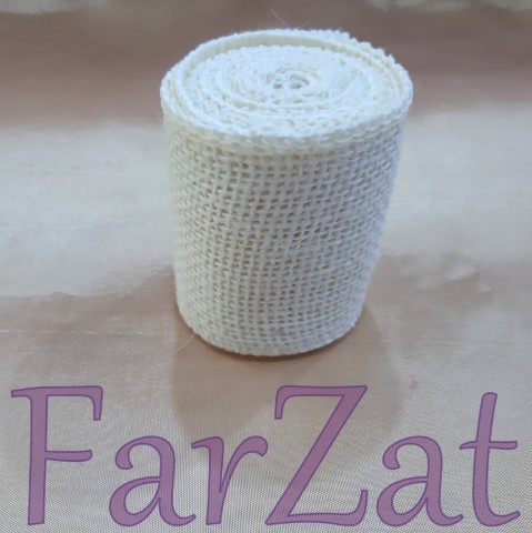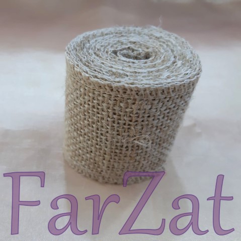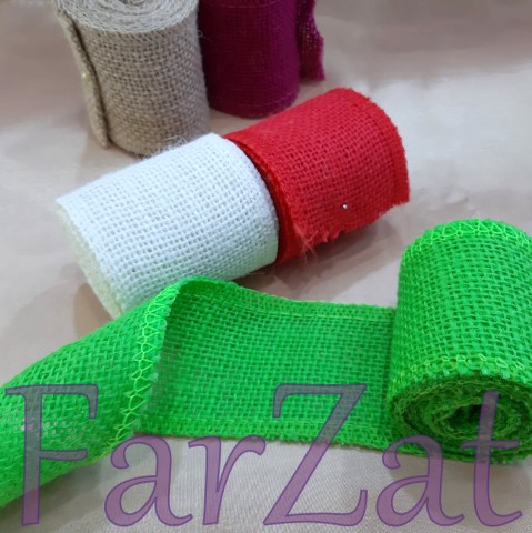 Banda decorativa din iuta colorata cu latimea de cca 5 cm.