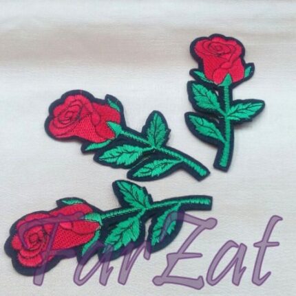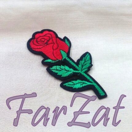 Broderie cu paiete, termoadeziva, forma florala, se aplica la caldura pe orice fel de material textil. Pe langa aplicatia termoadeziva, comercializam si o gama larga de aplicatieii individuale. Floarea , de culoare rosu, verde sau mov, are atasata o frunza brodata cu un fir argintiu. Pe conturul petalelor sunt fixate paiete sclipitoare.