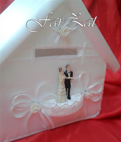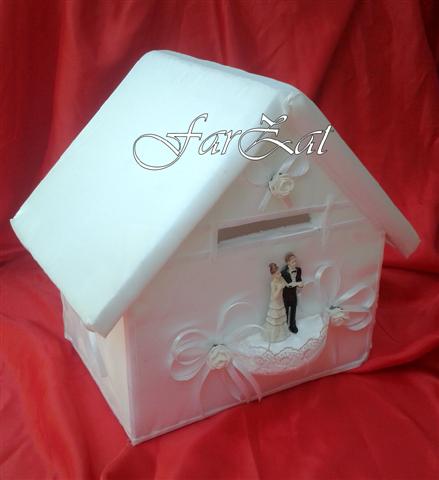 Casute pentru dar nunta realizate din polistiren imbracate in saten. Caracteristici: Cod: 25. Material: Polistiren imbracat in saten. Dimensiune: Lungime 30 cm, Latime 25 cm, Inaltime 25 cm. Culoare saten: Alb. Trandafirasii si funditele sunt realizate din panglica de saten de culoare ivoire si alb. Pretul afisat este pentru o casuta de bani. Casute pentru dar nunta cum ar fi: Casute de dar pentru nunta forma joben, Casuta de dar model masina, Cutii de dar din rafie si altele le puteti gasi la categoria Casute de bani, click aici. Avem pe stoc o gama diversificata de accesorii pentru nunta si botez, pe care la puteti gasi la categoria ”Accesorii pentru nunta”.