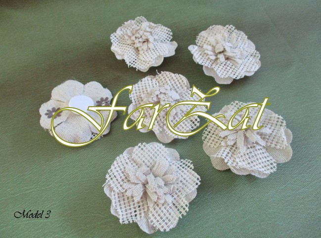 Pretul afisat este pentru un set de 6 flori decorative autoadezive din iuta.