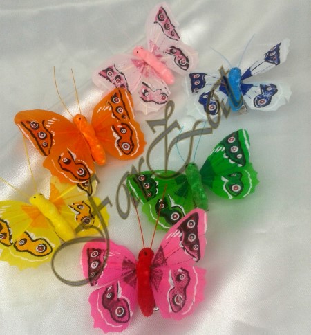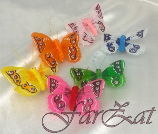 Fluturasi pentru decoratiuni realizati din pene naturale cu clama de prindere.