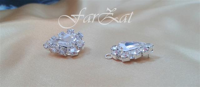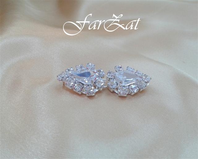 Inchizatoare metalice argintii tip brandenburg cu strasuri stralucitoare din pietre acrilice. Caracteristici: Forma: Lacrima. Material: Metal cu pietre acrilice. Culoare: Metal – argintiu, Pietre – alb cristal. Dimensiune: 40 x 16 mm. Forma pietricele: Diamant. Dimensiune pietricele: 4 mm, cristalul din mijloc 13 x 8 mm. Sistem de inchidere: Mos si baba. Avem la vanzare o gama variata de accesorii metalice cum ar fi: Nasturi diverse forme, Lanturi metalice aurii si argintii, Tinte diferite modele si culori, Inchizatoare cu cristale model brosa si multe altele pe care le puteti gasi la rubrica Accesorii metalice design. Pretul afisat este pentru o pereche de inchizatoare metalice argintii.