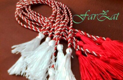 Pe suport exista si o fundita din saten de culoare rosie.