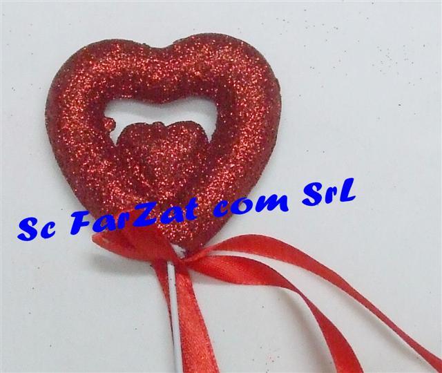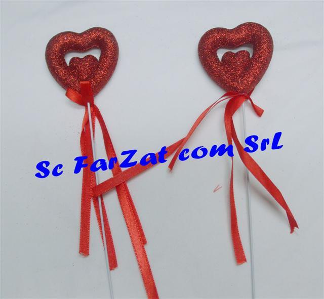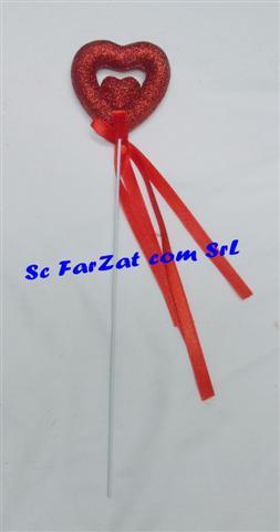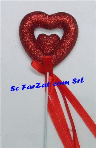Inimioara dubla confectionata din polistiren dur acoperit cu sclipici rosu si care are ca suport un bat metalic flexibil.