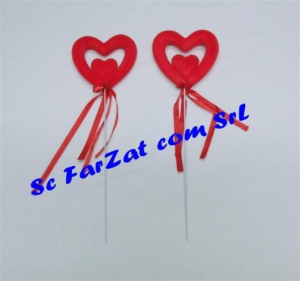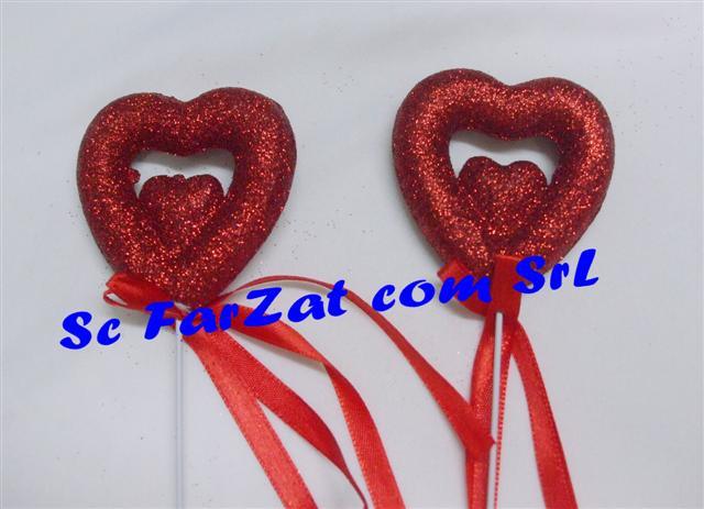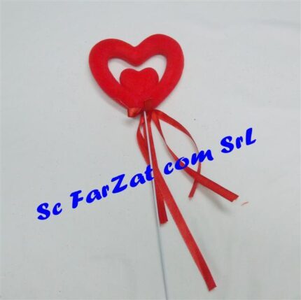 Inimioara dubla confectionata din polistiren dur acoperit cu sclipici rosu si care are ca suport un bat metalic flexibil.