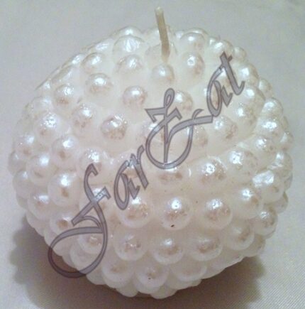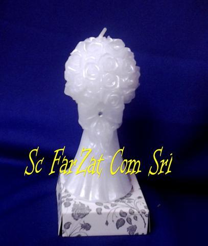 Lumanare nunta decorativa cu forma de buchet de mireasa legata cu panglica organza in forma de funda, avand dimensiuni de 9×4.5cm.