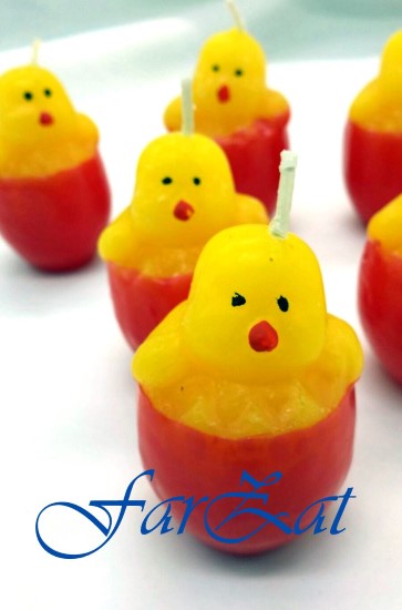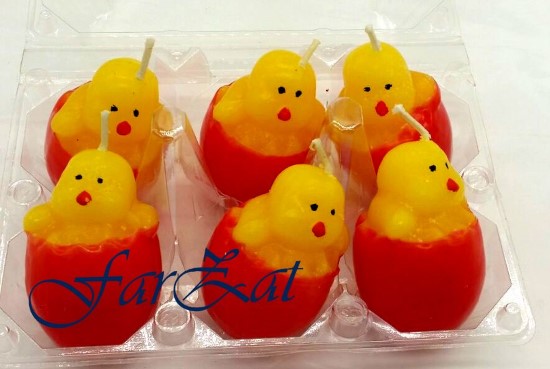 Lumanarea cu model puisor ce iese din ou, se comercializeaza la cofrag 6 bucati.