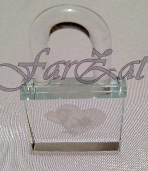 Marturie de nunta sub forma unui lacat din cristal cu inimioare este un cadou foarte potrivit pentru invitati. Dimensiune produs: 6,5 cm x 4 cm x 1,2 cm
