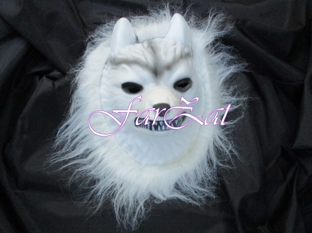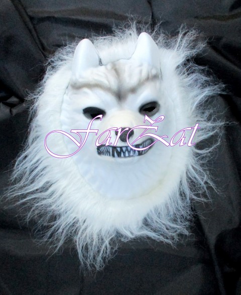 Masca este realizata din spuma gumata iar pe margine este decorata cu blana sintetica.