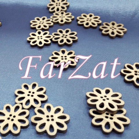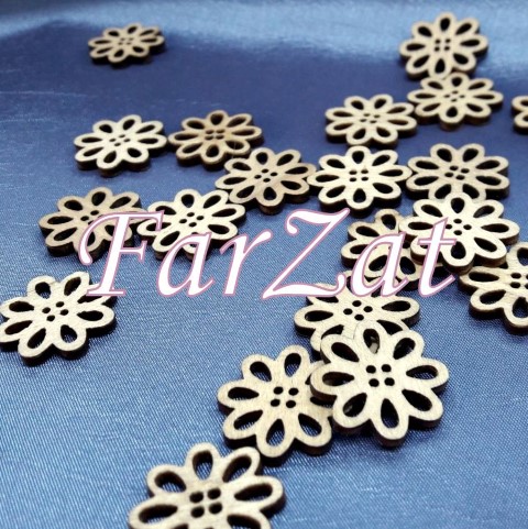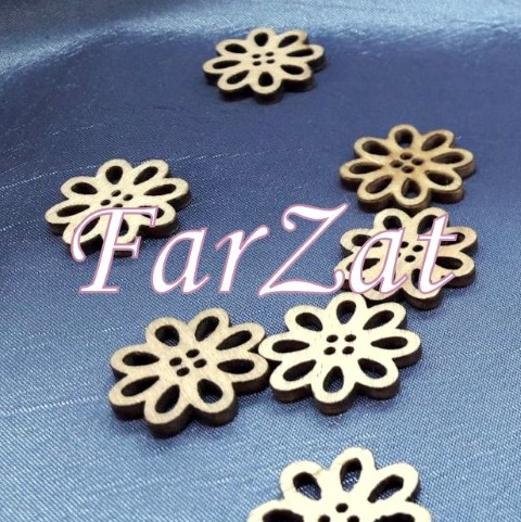 Nasturi realizati din lemn sub forma de floare cu patru gauri de prindere.