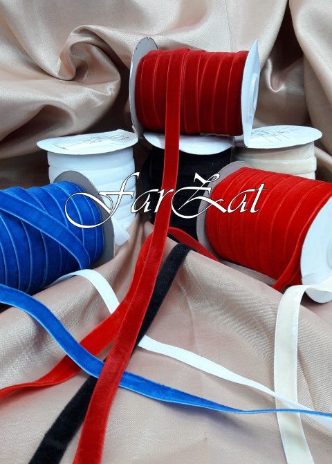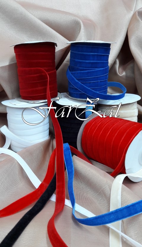 Banda din catifea are o latime de 1 cm si o comercializam la rola de 18 metri.