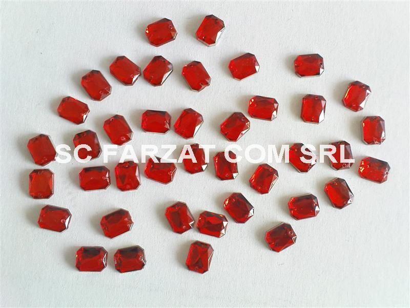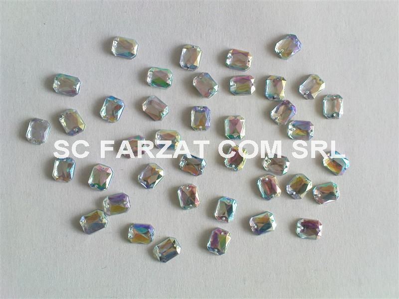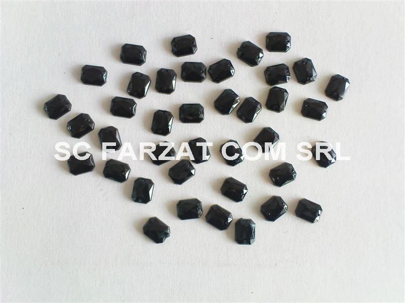 Pietre de cusut cu forma dreptunghiulara cu marginile rotunjite, material acril, dimensiuni de 8 x 10 mm.