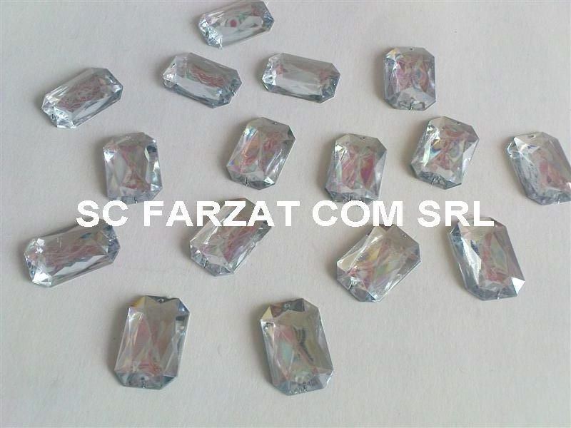 Pietre de cusut cu forma dreptunghiulara, material acrylic, dimensiuni de 18x25mm.
