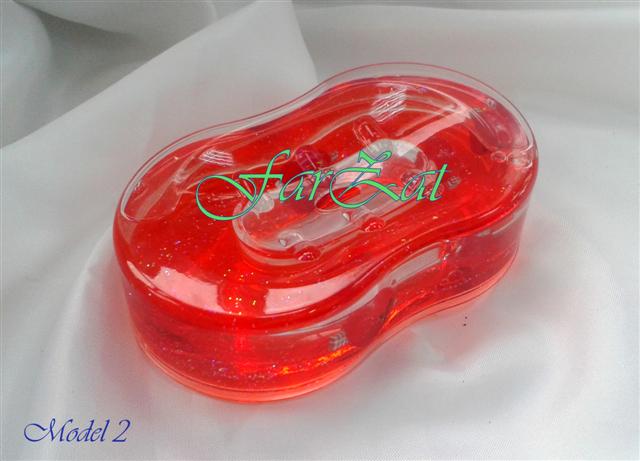 Sapunierele au in interior un lichid transparent si unul rosu si le avem disponibile pe stoc in doua modele.
