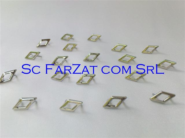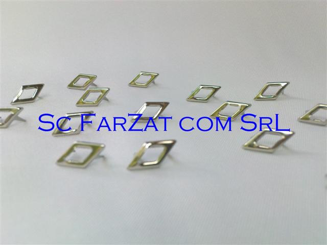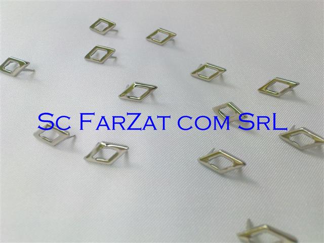 Tinte metalice romb se pot aplica pe majoritatea tipurilor de tesaturi piele, imbracaminte, incaltaminte si genti. Cod : 08 Forma : Romb Diametru : 14 x 7 mm Mod de ambalare : o punga care contine cca 100 buc Culori disponibile : argintiu nichelat Pretul afisat este pentru o punga de 100 bucati