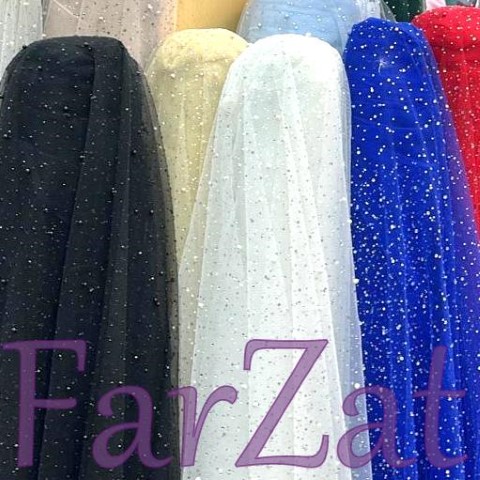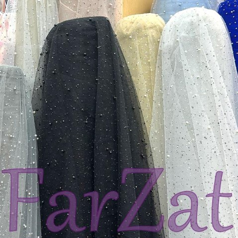 Material textil tiul cu strasuri si margele.